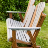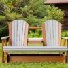 This 5-foot Adirondack 5′ glider (with a console) offers smooth, relaxing motion and features a fold-down console for drinks. When folded up, it comfortably seats three, making it a versatile addition to any outdoor space.
